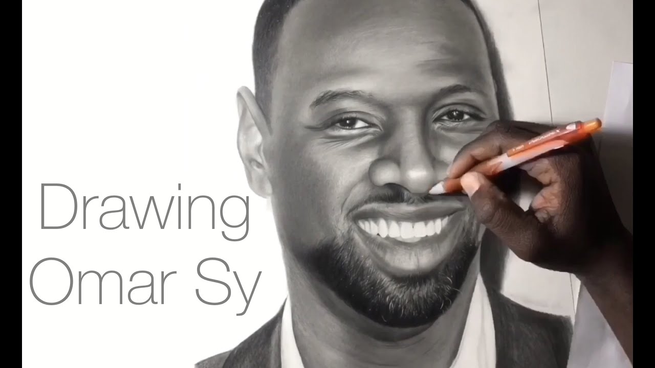 Dessin de l'acteur, humoriste et producteur français Omar Sy.Crayon graphite sur papier britol, format a3, 2021